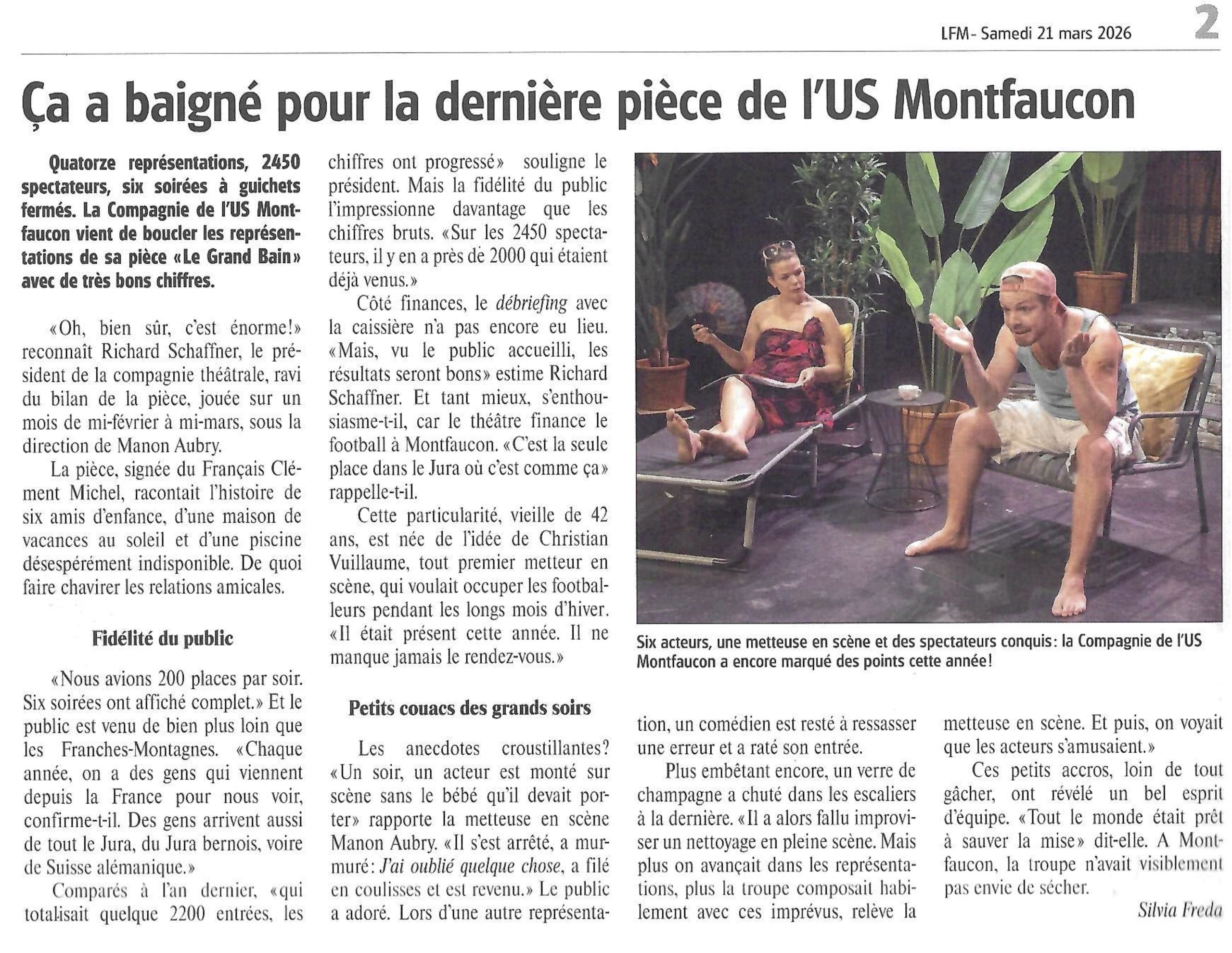 Le Franc-Montagnard – Ça a baigné pour la dernière pièce de l’US Montfaucon – Mars 2026 flo1 29 mars 2026 Pas de commentaire